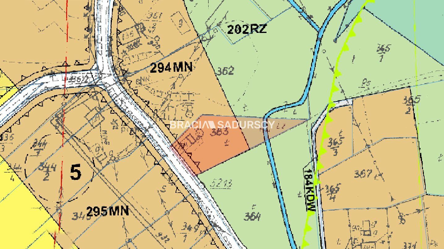 Działka z bezpośrednim zjazdem z drogi publicznej, ze starym domem (do rozbiórki). Działka objęta miejscowym planem zagospodarowania przestrzennego. Powierzchnia terenu budowlanego wynosi ok. 12 arów , o symbolu 294 MN (tereny zabudowy mieszkaniowej jednorodzinnej), na pozostałej pow. ok. 4 arów, na terenach rolniczych zadrzewionych i zakrzewionych. Teren budowlany o podstawowym przeznaczeniem pod zabudowę mieszkaniową jednorodzinną. W/g MPZP, maksymalna pow. zabudowy wynosi 25% , pow. biologicznie czynna: min: 60%. Max. wysokość zabudowy mieszkaniowej - do 11 m.